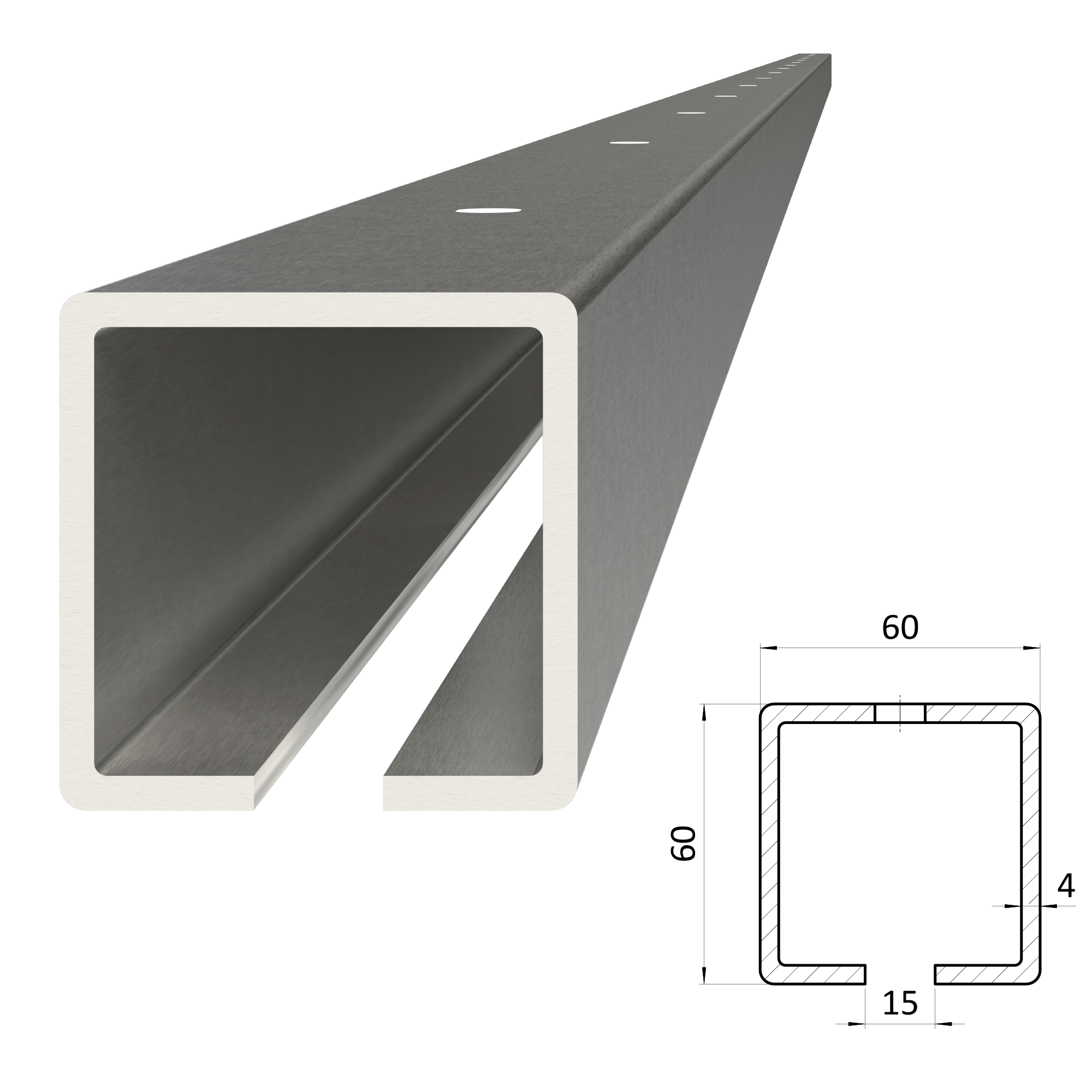 - C profil 60 x 60 x 4 x 4000 mm s otvormi, pozinkovaný
