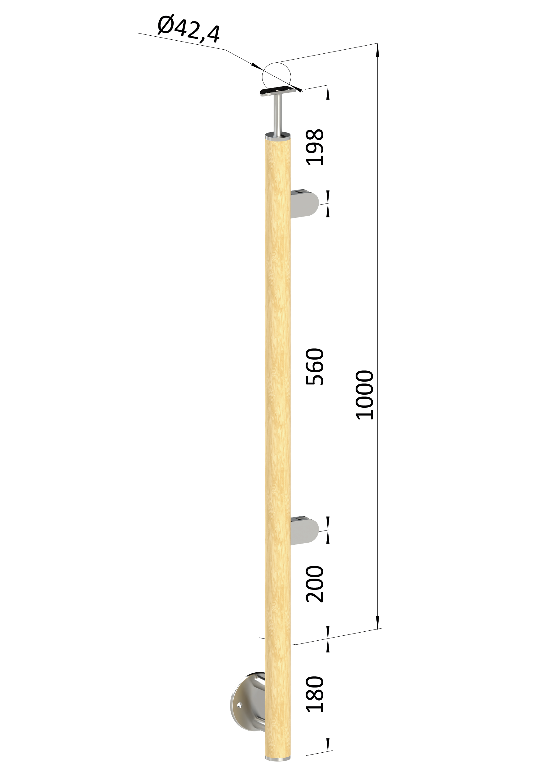 - Drevený stĺp, bočné kotvenie, výplň: sklo, pravý