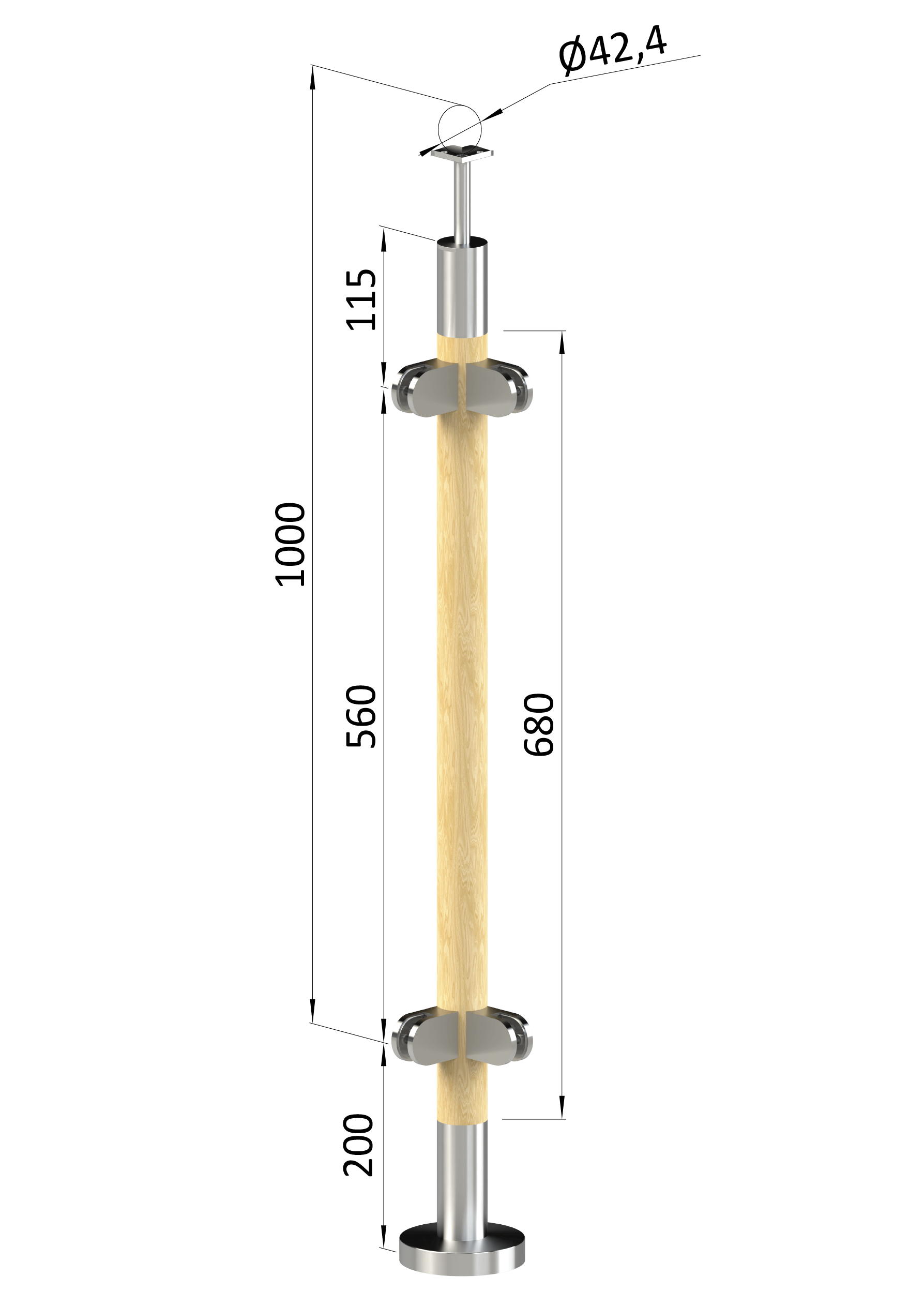 - Drevený stĺp, vrchné kotvenie, výplň: sklo, rohový
