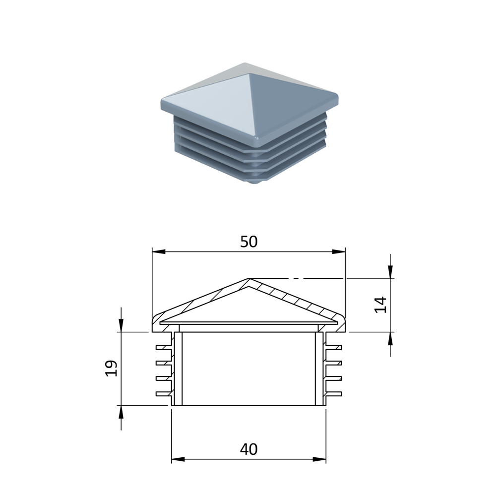 Krytka plastová so strieškou 50 x 50 mm, sivá