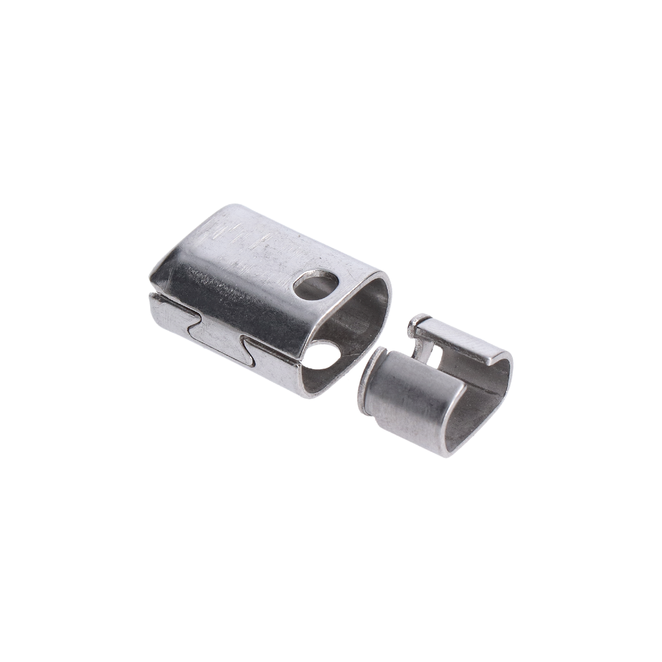 Nerezové lisovacie púzdro pre dve 3.0mm lanká - uzavreté s okom (skladá sa z dvoch častí). K320/AISI 316.
