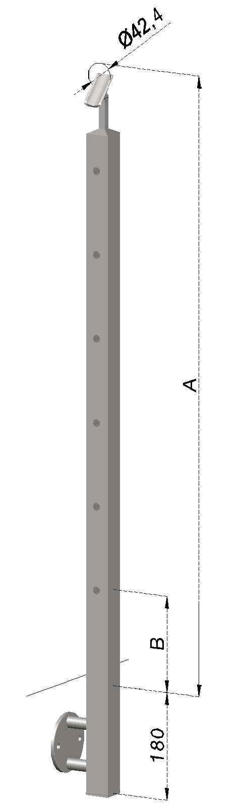Nerezový stĺp, bočné kotvenie, 6-dierový koncový, ľavý Rozmer B