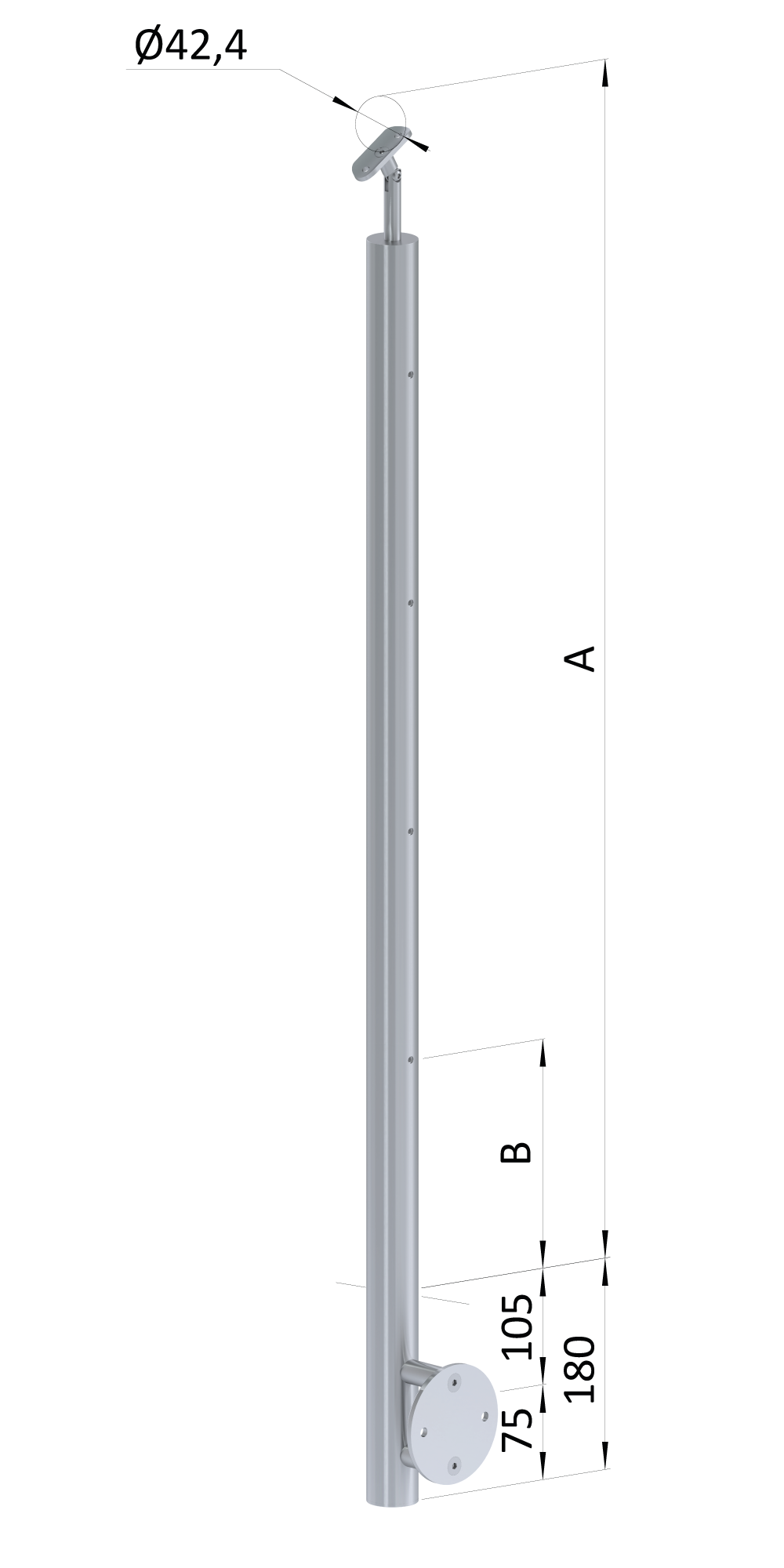 - Nerezový stĺp, bočné kotvenie, bez výplne, 4-radový Rozmer B
