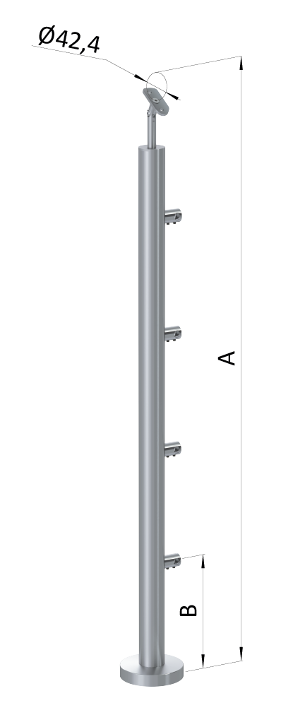 Nerezový stĺp, vrchné kotvenie, 4-radový, priechodný Rozmer BSkladom43,60 €/ KS35,44 € bez DPH