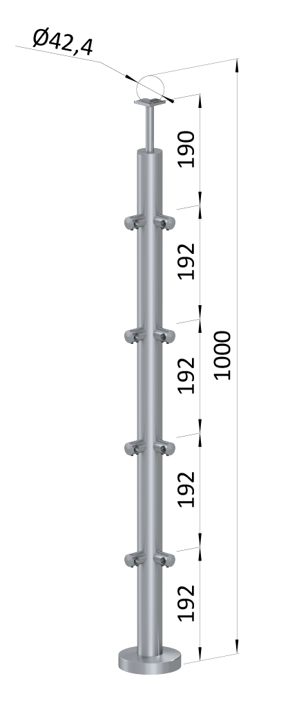 Nerezový stĺp, vrchné kotvenie, 4-radový rohový: 90°