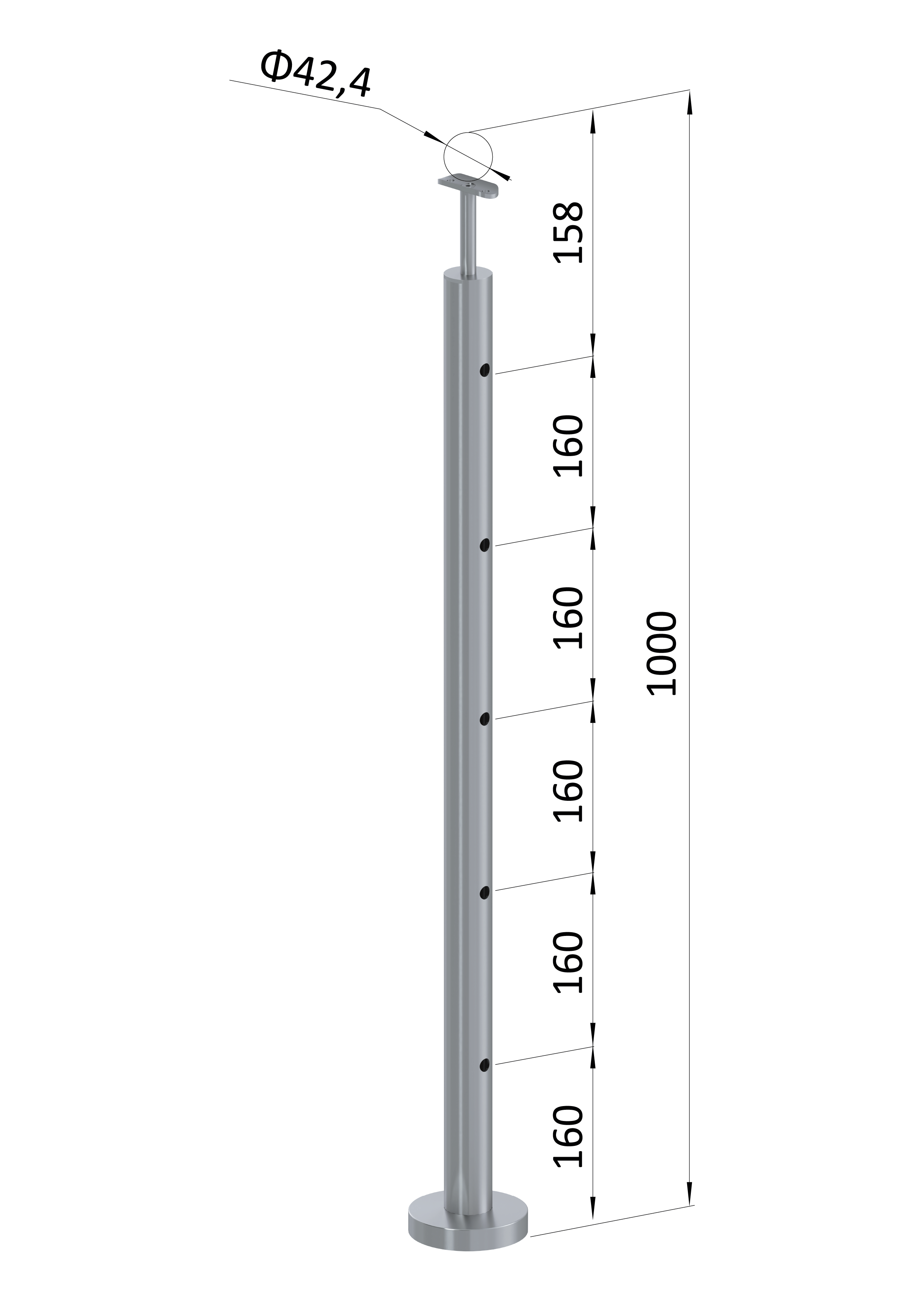 - Nerezový stĺp, vrchné kotvenie, 5-dierový koncový Priemer výplne 12