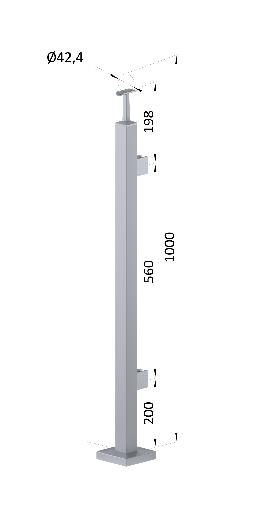 - Nerezový stĺp, vrchné kotvenie, výplň: sklo, pravý
