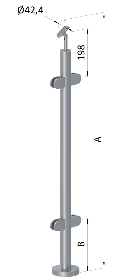 - Nerezový stĺp, vrchné kotvenie, výplň: sklo, priechodný Rozmer A
