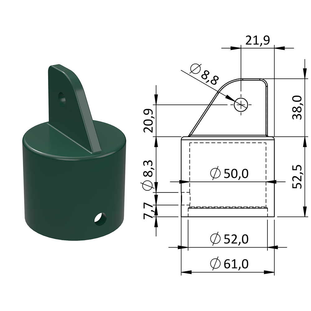 - Plastová krytka, ø 61 x 90,5 mm, tvrdený plast PA