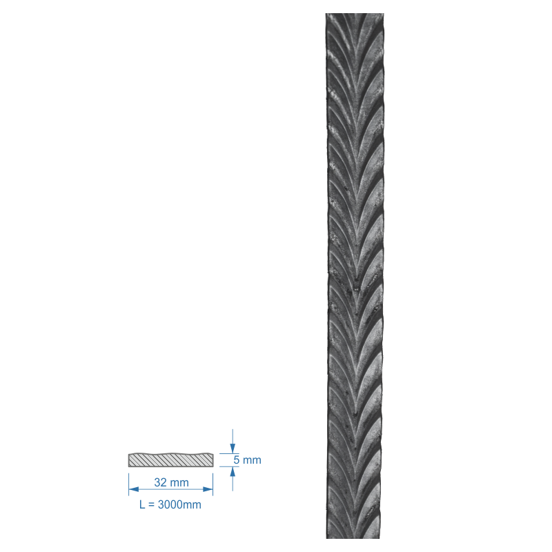 - Plochá tyč vzorovaná 32 x 5 x 3000 mm, oceľ S235