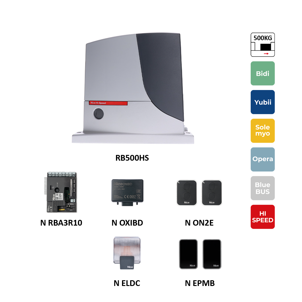 KIT-Robus500 HI-SPEED rýchly pohon pre posuvnú bránu do 500kg, 24 V, intenzívna prevádzka, v = 44 cm/s, 1x RBA3/HS BlueBus, 1x OXIBD, 1x EPMB, 1x ON2E, 1x ELDC