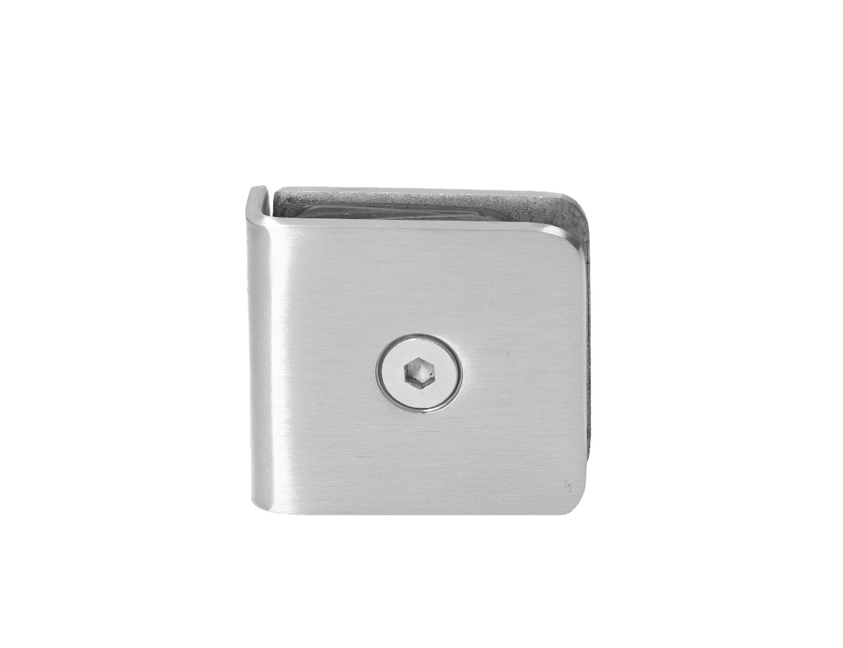 svorka skla na sklenený dverový systém, medzi stenu a sklo, 50x45x16mm, hrúbka skla 8-10mm, brúsená nerez K320/AISI304