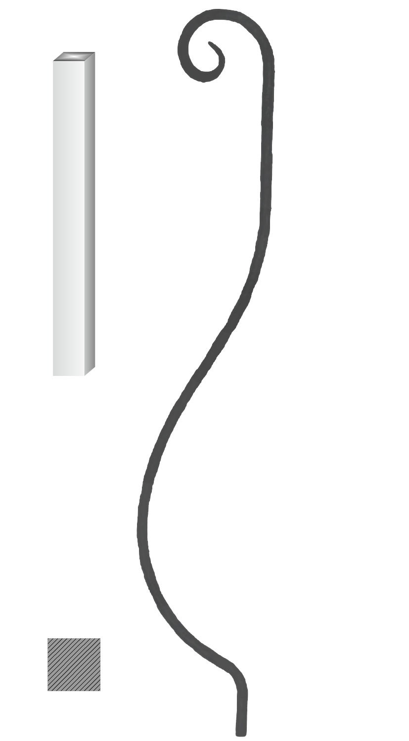 Najčastejšie 12×12 mm štvorcový prierez s tvarovaným dekorom, vhodný do zábradlí aj plotových sekcií.