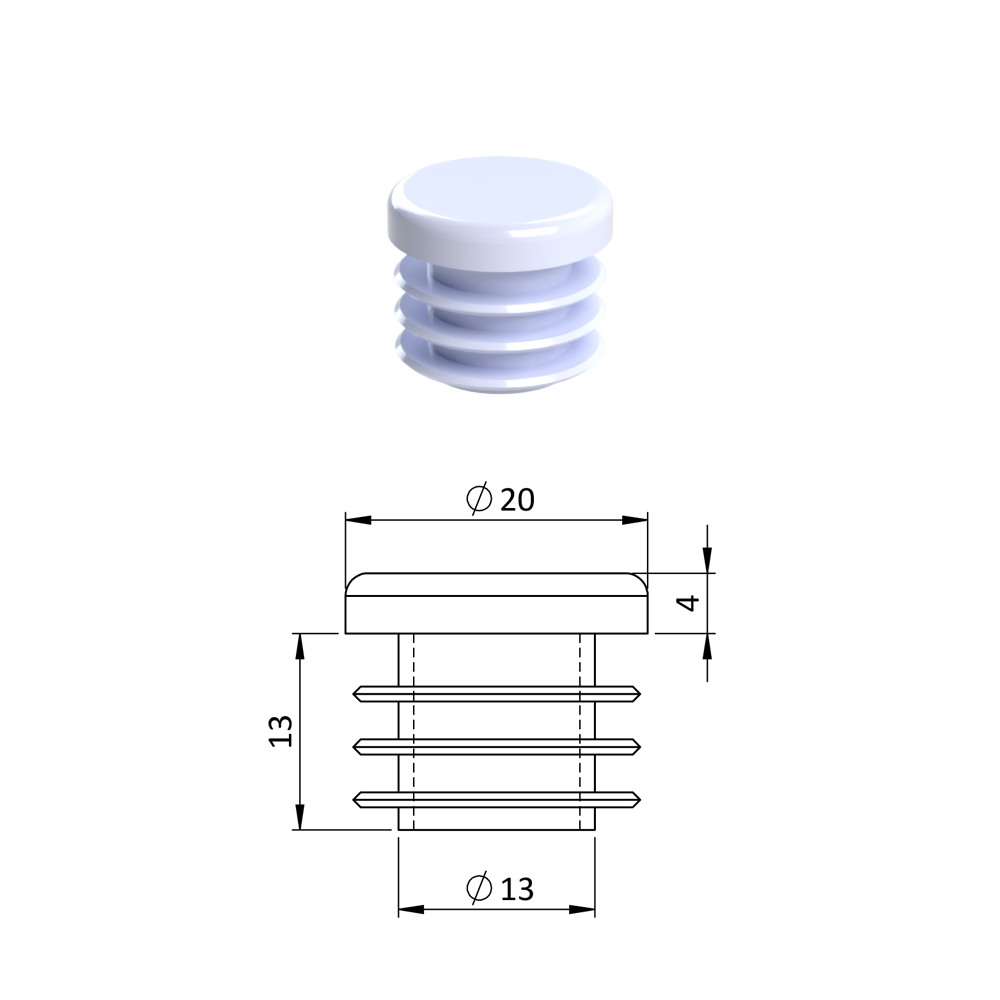 - Vnútorná krytka guľatá ø 20 mm, plastová, biela